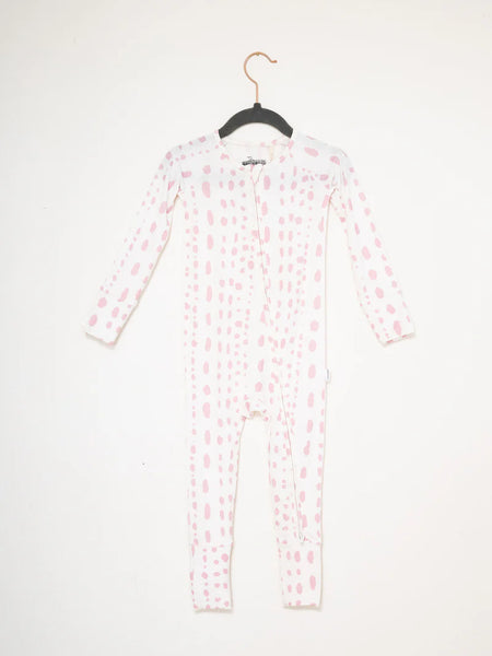 The Uptown Baby's Bamboo Sleep Romper in Pink Dalmatian Dot is the epitome of charm and comfort for your little one. This adorable sleep romper combines the luxurious softness of bamboo fabric with a playful Pink Dalmatian Dot pattern, ensuring both style and coziness for bedtime.