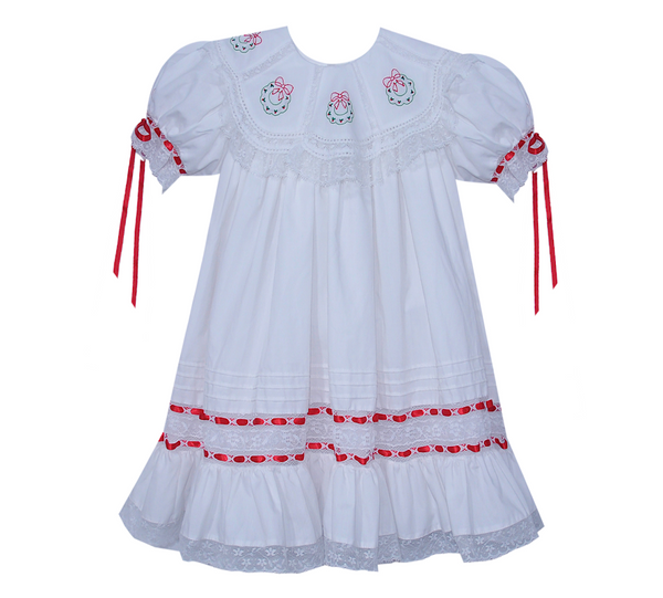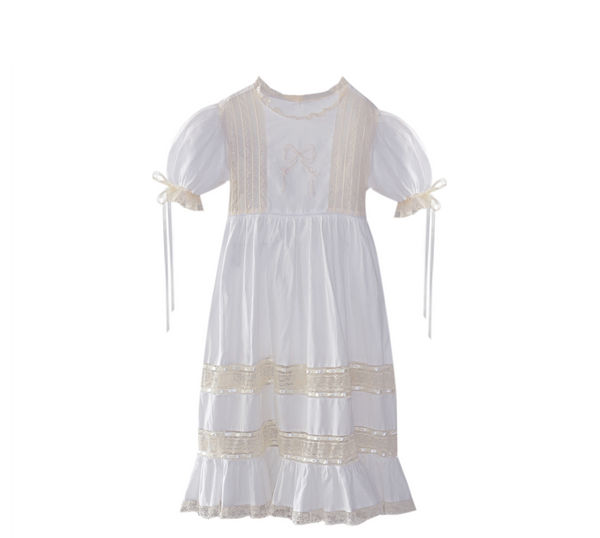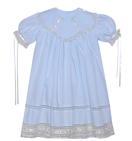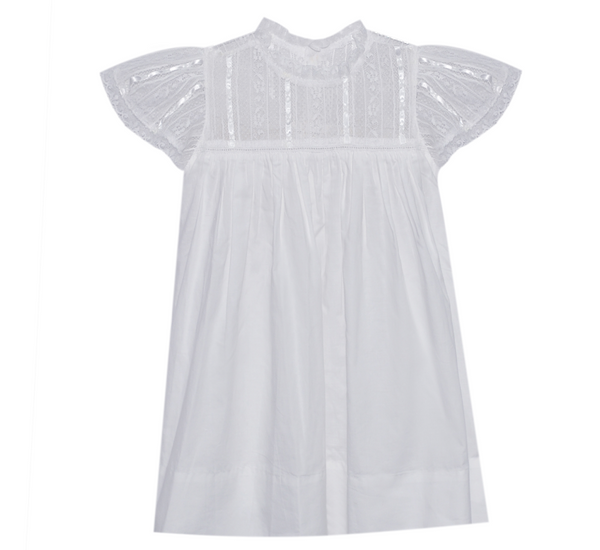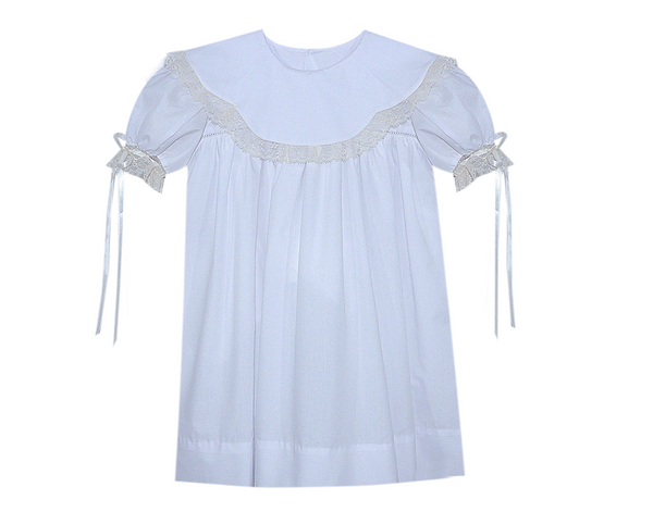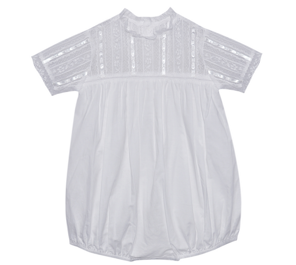 a gorgeous heirloom bubble with the most detailed lace making up the sleeves and hand enbroidered detailing on the front.