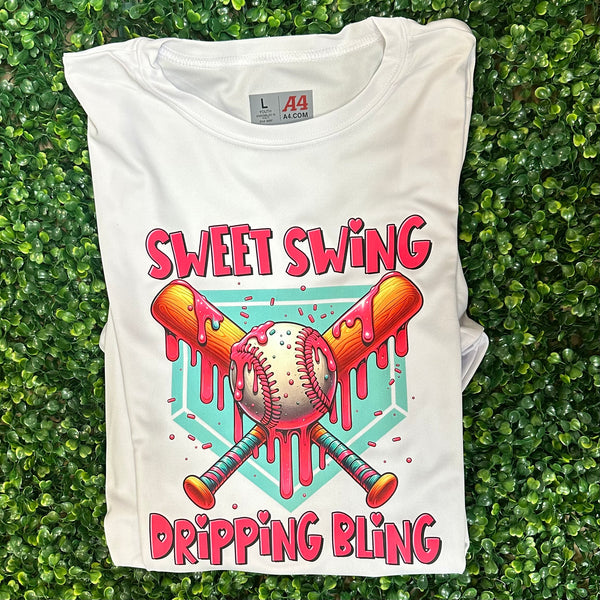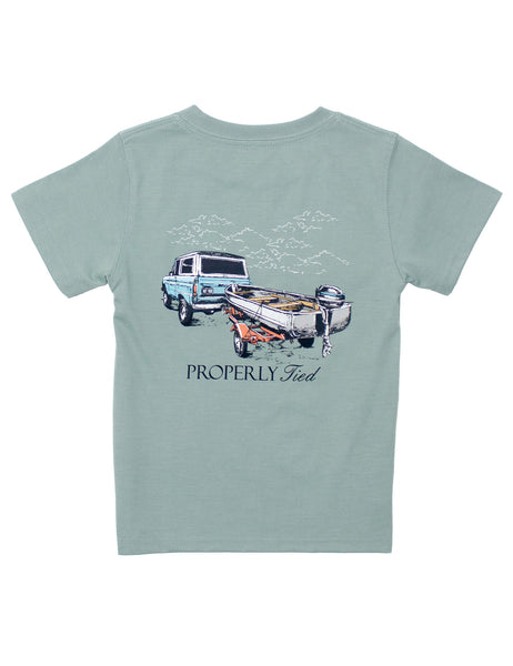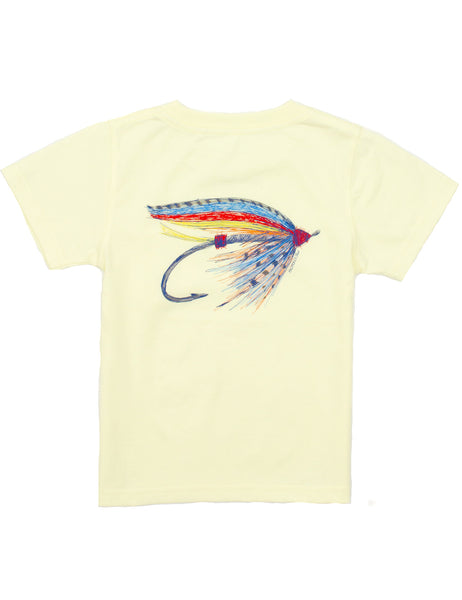 Knit, striped quarter zip pullover with small lures embroidery on front left hand side of top.